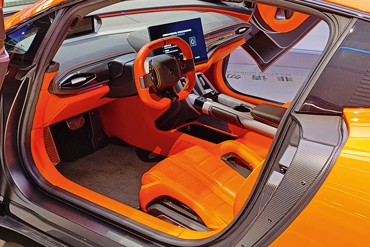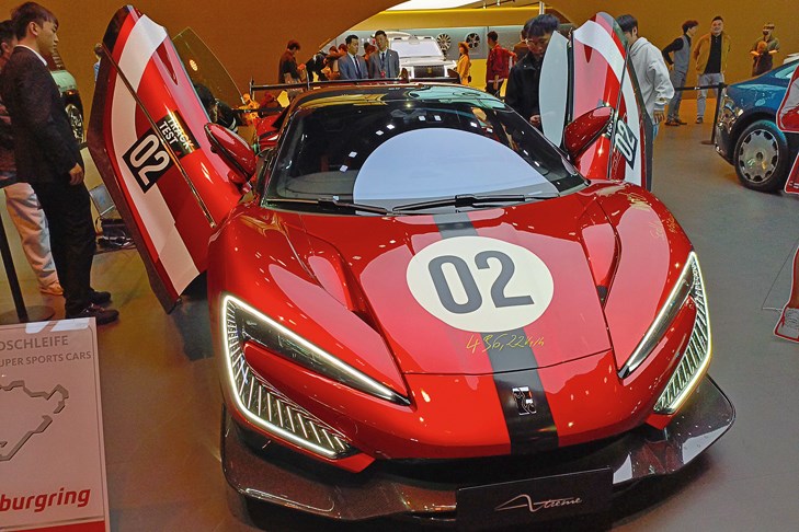 Но, пожалуй, не ошибемся, если главным шоу-стоппером стенда GAC назовем электрический суперкар Hyptec SSR. Его важное достоинство в мощности: полноприводный автомобиль с кузовом, полностью выполненным из углепластика, дверями-бабочками и встроенной AI-системой для анализа дорожного покрытия трасс выдает более 1200 л.с. Он способен разгоняться до 100 км/ч за 1,9 с, а батарея емкостью 74,7 кВт⋅ч обеспечивает запас хода до 506 км.
