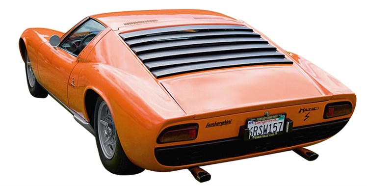Прозрачную крышку над моторным отсеком на серийных Miura заменила решетка, напоминающая жалюзи