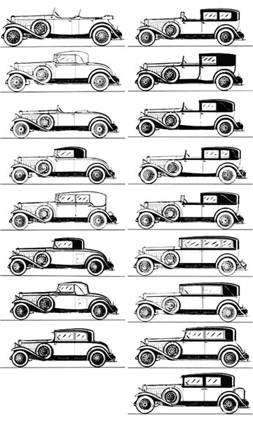 Cadillac V16 второго поколения также предлагался более чем с десятком разновидностей кузовов, но база укоротилась до 3588 мм