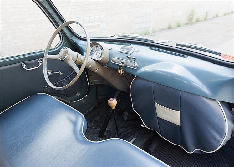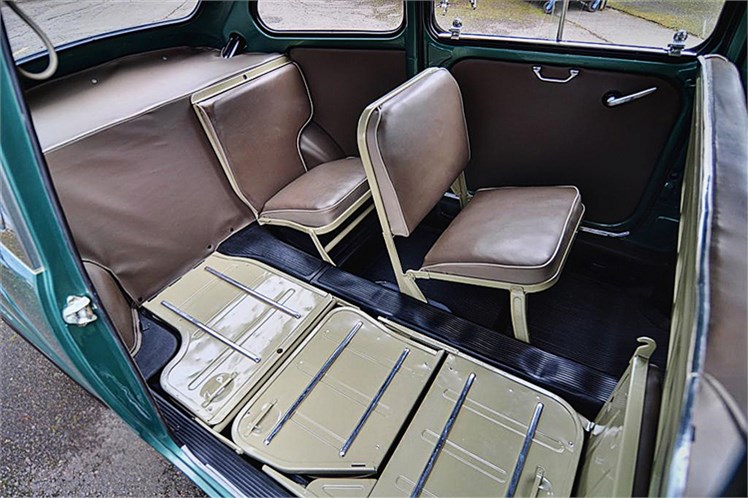 А добила бы сегодня экспертов Euro NCAP простейшая, с использованием пазов, система складывания задних сидений. Но в 1950‑х люди смотрели на жизнь несколько иначе. Тогда публику приводили в восторг невиданные возможности трансформации салона, точнее, салонов. Джакоза предложил компоновку с двумя и тремя рядами сидений, хотя «100 Familiale» по длине лишь немного превосходила (3,535 vs 3,215 мм) стандартный Fiat 600 при сохранении той же двухметровой базы. Сложите все сиденья в пятиместной версии — получите полноценную двуспальную кровать. В шестиместной же, «раскатав» раздельные четыре креслица задних рядов в напольные ниши, получали отсек площадью 1,75+ м2 и объемом под два куба, где можно было перевозить до 350 кг груза. Такая вариативность использования внутреннего пространства при неизменном однообъемном кузове и дала модели ее официальное имя — Multipla.