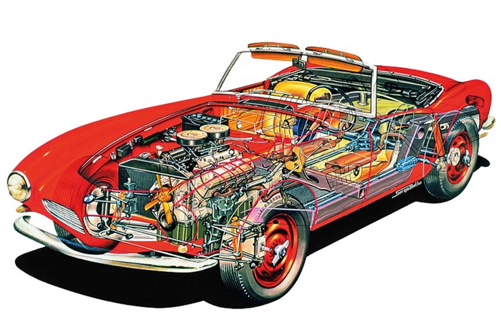 Не все так просто, скорее наоборот. После начала продаж под занавес 1956 года клиенты стали жаловаться на тесноту двухместного салона и запах бензина в нем, особенно при поднятом тенте или установленной опциональной жесткой крыше. Виновником признали сварной алюминиевый топливный бак, размещенный прямо за спинками сидений из-за огромного для компактной модели (длина 4380 мм) объема в 110 л. С технической точки зрения это не выглядело избыточным, ведь атмосферный V8 легко пожирал под 20 л бензина на 100 км. Однако покупатель всегда прав, и на машинах второй серии, которые вышли на рынок весной 1957‑го, бак ужали до 66 л.