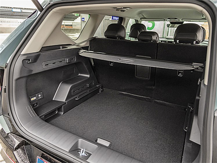 Размеры салона впечатляют. Человек ростом 183 см может сидеть «сам за собой» с достаточным запасом пространства в коленях, а ровный пол сзади позволяет разместить троих пассажиров. Много места и над головой. Объем багажника составляет достойные 566 л, при этом пол здесь регулируется по высоте. Дополнительный отсек под капотом объемом 44 л предназначен для хранения зарядного кабеля.
