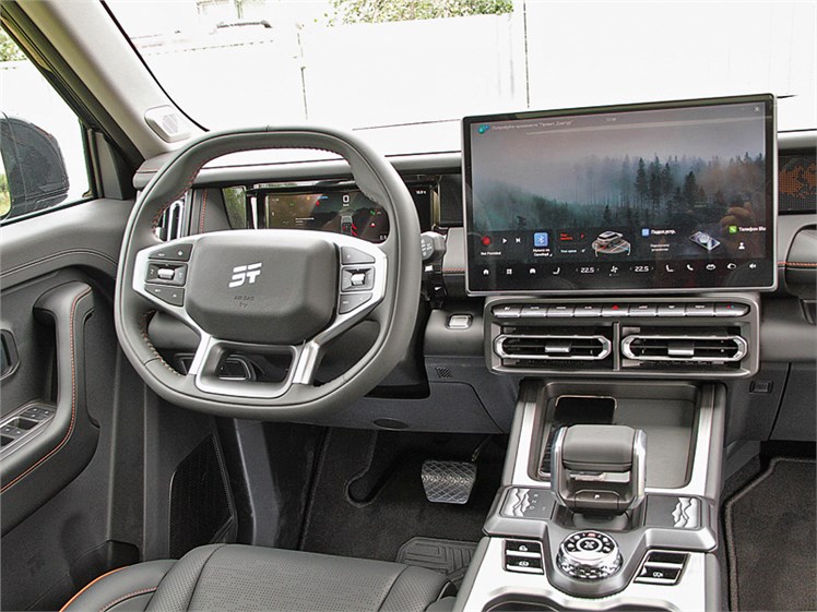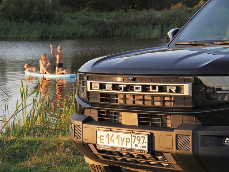 Ну а мы двигаемся дальше, нам предстоит бросок на 164 км в сторону восточной части Подмосковья — к озеру Голубое близ Воскресенска. Почуяв свободу, JETOUR T1 агрессивно подминает под себя километры сначала Киевского шоссе, затем ЦКАД. У нас на тесте модификация с двухлитровым турбированным мотором мощностью 245 л.с. Динамичный набор скорости обеспечивают 375 Нм крутящего момента и классическая восьмиступенчатая автоматическая коробка передач. Из семи режимов вождения выбираем «Спорт», автомобиль в нем более отзывчиво реагирует на педаль газа. На трассе Т1 чувствует себя уверенно, подвеска вполне приспособлена для высоких скоростей, даже в крутые повороты автомобиль способен заходить без излишних кренов.