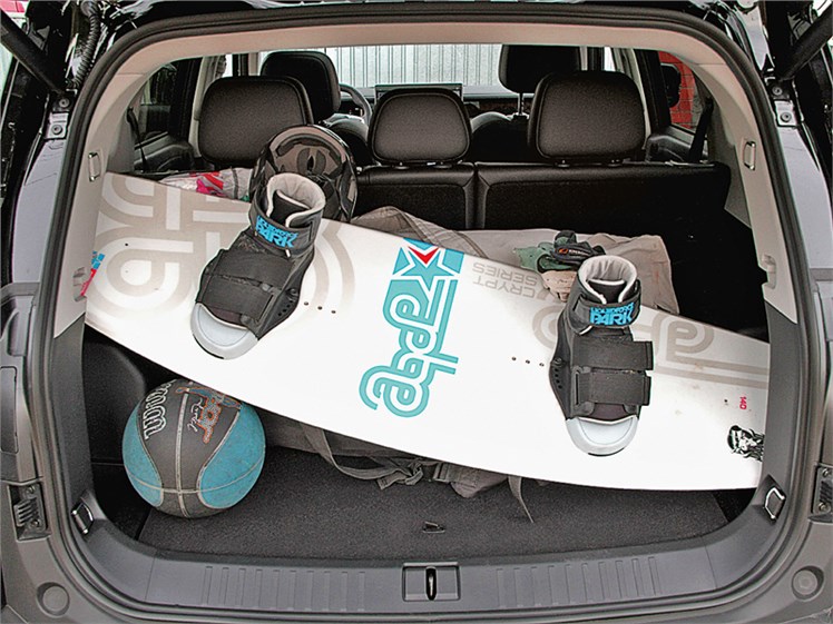 «Единичка» сразу удивила вместительным багажником: доска для вейкборда неожиданно уместилась поперек без необходимости складывать задние сиденья — такого мне лично не приходилось видеть в большинстве побывавших у нас на тест-драйве кроссоверах. T1 имеет в ширину 1967 мм и багажник в 574 л (1455 л при сложенных задних сиденьях), так что, помимо вейкборда, туда легко вошли два сапа и множество сумок, а мелочевку легко удалось расположить в 45 отсеках для хранения с одной только проблемой — не забыть, что где лежит.
