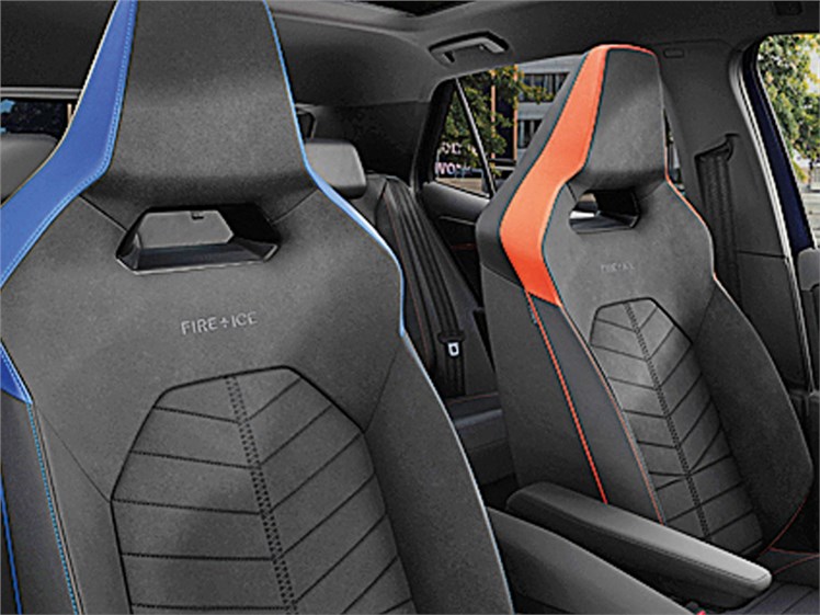 Изменения в интерьере версии Fire & Ice не столь заметны по сравнению с ярким экстерьером, но необычное сочетание синего (лед) и красного (огонь) цветов в обивке передних кресел стоит признать удачным. Качество отделки ID.3 значительно улучшилось за прошедшие годы: здесь используется больше мягких на ощупь материалов, чем в Cupra Born. Хотя глянцевый черный пластик вокруг дверных ручек удешевляет интерьер, и к неудобным сенсорным кнопкам на руле, которые преследуют ID.3 с момента его запуска, привыкнуть невозможно.