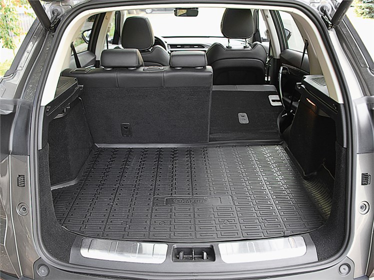 Второй ряд не менее гостеприимен. Запас пространства — солидный, угол наклона спинки дивана регулируется, легко подобрать удобное положение. Как и на первом ряду, здесь есть пара силовых USB-разъемов, лампочки индивидуального освещения и собственные дефлекторы вентиляции. Багажник же на 378 л (до шторки) может похвастаться удачной конфигурацией, разрезной диван складывается в почти ровный пол (с небольшим наклоном). В подполье же разместились «докатка» и инструмент. В отделке везде используется экокожа (кроме базовой Active), а в «старших» исполнениях можно рассчитывать на пятую дверь с электроприводом (Prestige/Prestige+).