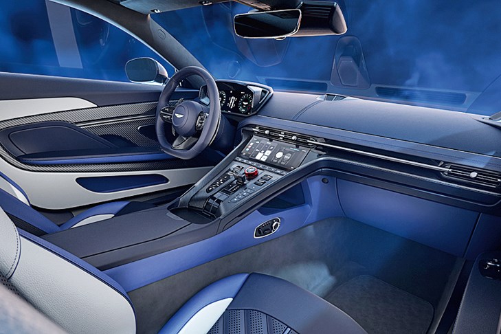Солидный суперкар для настоящих джентльменов. Тут для обозначения самой «заряженной» версии достаточно пары ярких вкраплений вроде алого шильдика в виде литеры S на передних крыльях и такого же цвета шайбы выбора ездовых режимов на центральной консоли. Остальные спецэлементы не броски и строго функциональны, идет ли речь об увеличенных переднем сплиттере и воздуховодах на капоте, расширителях порогов или особом диффузоре с квартетом интегрированных в него патрубков выхлопной системы вместо двух у базового DB12. Мощность 4,0‑литрового битурбо-V8 от AMG без всякого электрического довеска округлена до 700 «лошадей» (+20 л.с.), параллельно повышено быстродействие АКП8. Выигрыш от этой операции, если оценивать его только с помощью секундомера, достаточно скромен: время спурта 0–100 км/ч улучшено всего на 0,1 с (3,5 с), а «максималка» вообще осталась прежней (325 км/ч). Но не менее важно субъективное восприятие скорости. Дополнительный прилив адреналина обеспечивают более отзывчивая педаль акселератора и звучный саундтрек, создаваемый опциональной выхлопной системой из титана. Быть точнее в виражах DB12 S помогают особые настройки подвески, рулевого управления и «умного» заднего дифференциала. Супервыносливые тормозные механизмы с карбон-керамическими дисками такому Aston тоже положены по умолчанию. Вот он, джентльменский набор!