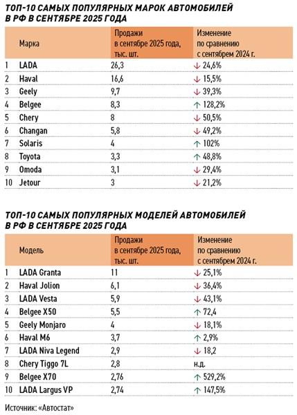 Среди иностранных брендов лучшим снова оказался Haval, автомобили которого за первый осенний месяц разошлись в количестве 16,6 тыс. единиц. На третьей строчке расположился Geely (9,7 тыс.), за ним следует Belgee (8,3 тыс.). Замыкает пятерку лидеров Chery с показателем 8,02 тыс. машин.